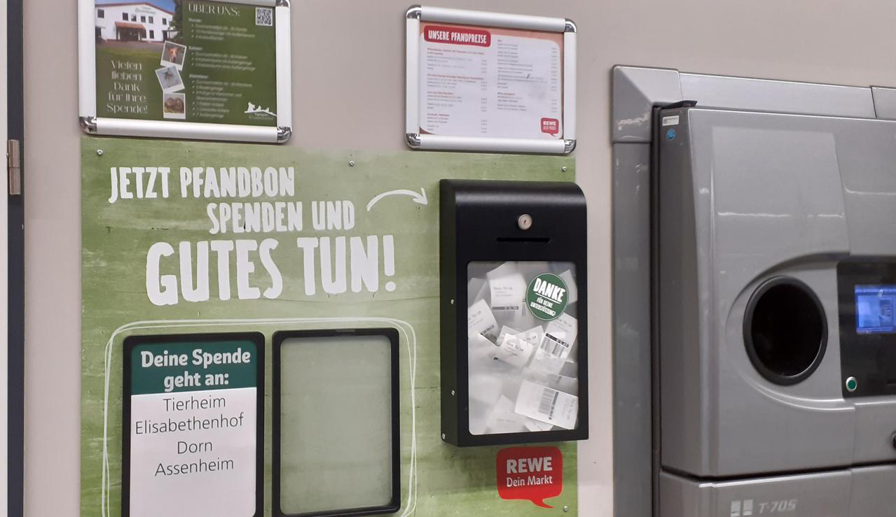 Dank der Unterstützung von REWE Getränkemarkt der Michael Meige oHG in Reichelsheim und der Kundinnen und Kunden konnten unglaubliche 1.125,96 EUR gesammelt werden. Wir sind überglücklich und bedanken uns herzlich bei Michael Meige und bei allen Kundinnen und Kunden, die mit ihren Bon-Spenden die Tiere unterstützen. Vielen Dank für Ihre großzügige Hilfe!