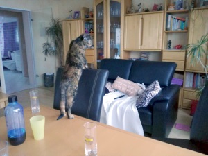 ich wollte euch ein paar Infos zur süßen Alexia geben. Es ist so toll sie hier zu haben, auch wenn meine Erstkatze Peppina das nicht ganz so sieht. Wie zu erwarten war, sind die beiden noch keine dicken Freunde. Da wird gefaucht, ein wenig geknurrt und auch mal auf kurze Distanz gejagt. Aber die meiste Zeit geht man sich tunlichst aus dem Weg. Trotz allem nutzt Alexia immer wieder die Gunst der Stunde, um sich über ihr neues Revier zu orientieren. Natürlich immer nur unter Aufsicht, übrigens seit gestern.