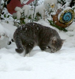 Seit Weihnachten geht Leo auch raus und bleibt bisher immer in der Nähe, nur ganz selten, dass er mal 1-2 Stunden verschwunden ist. Bisher hat er noch nichts gefangen, aber er möchte gerne! Flocke hatte letztens eine Maus gefangen und Leo war ganz verrückt, weil er sie nicht haben konnte. Flocke hat sie nicht hergegeben.