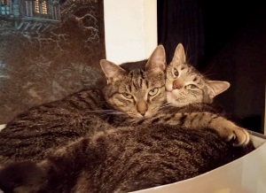Nach wie vor lassen sie sich nicht anfassen - ob sich das noch ändern wird, weiß ich nicht. Ich bin froh, dass sie bisher noch nicht krank geworden sind, denn es wäre ein echtes Problem, sie in einen Transportkorb zu bekommen. Mit den beiden anderen Katzen verstehen sie sich gut - sie halten Abstand und so funktioniert es einwandfrei.