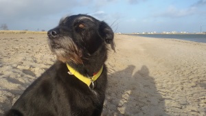 Kana hat sich von Anfang an sehr gut bei uns eingewöhnt, auch den Umzug im Herbst 2013 an die Ostseeküste hat sie sehr gut überstanden. Sie ist einfach super unkompliziert, kommt gerne überall mit hin und ist überall (insbesondere bei unseren Eltern und deren Hunden) sehr gern gesehener Besucher. Lange Spaziergänge mit dem Pony und Ausflüge an den Strand sind ihr Wochenhighlight, bei dem sie sich voll austobt. Sie liebt es mit dem Ball zu spielen, apportiert den auch fleißig und hat so auch ihre Lust am Schwimmen entdeckt. Beim Spaziergang ist sie voller Elan und freut sich, wenn sie ihre Hundefreunde trifft, in der Wohnung ist sie absolut friedlich und pflegeleicht (sie kaut nichts an, klaut keine Lebensmittel,...), wobei sie am liebsten zwischen uns auf dem Sofa kuschelt. Wir teilen uns unsere Stundenpläne (Uni) immer so ein, dass Kana möglichst wenig alleine zu Hause sein muss, (max. 3 Stunden) damit kommt sie gut klar und verbringt diese Zeit meistens schlafend in ihrem Korb. Ihr blindes Auge macht ihr keine Schwierigkeiten (kein tränendes Auge, keine Entzündungen o.Ä.), wir lassen es allerdings regelmäßig vom Tierarzt kontrollieren, da es mit den Jahren doch sehr geschrumpft ist.