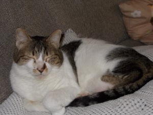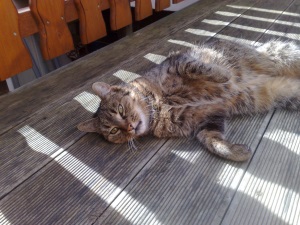 Molly hatte wieder mal Allüren, wollte nichts fressen und hatte über 1 kg abgenommen (Wenn ich das nur auch von mir behaupten könnte), also wieder zu Dr. ******, gleiche Diagnose, gleiche Medikamenten und so haben wir diese Klippe auch wieder überwunden und sie frisst wieder, wie man auf dem Foto sehen kann. Natürlich gab es ja auch was besonderes: von *****. Warum, was der Auslöser war, konnte nicht geklärt werden. Wenn es nicht zu albern wäre, würde ich behaupten sie wurde aus reiner Sympathie krank (beide Male hatte ich zuvor Grippe) aber dies wäre ja wirklich nur zu albern.