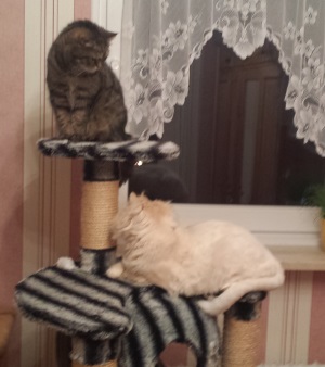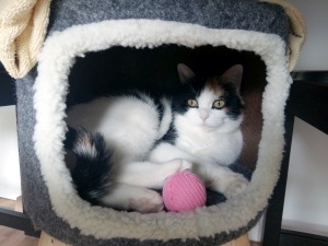 Mira (ehemals Maffi) fühlt sich bei uns sehr wohl. Sie versteht sich mit Paula unserer gestromten Katze einigermaßen gut.