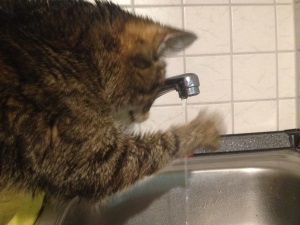 Lilly mit ihren Waschorgien, daran hat sich nichts geändert. Seit neuestem klaut sie Tannenzweige von meiner Weihnachtsdeko, und bringt sie mir ganz stolz damit ich mit ihr spielen darf.