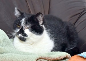 Utz hat sich in den dreieinhalb Jahren gut bei uns eingelebt. Er versteht sich mit seinen "Mitbewohnerinnen" und ist inzwischen zutraulicher geworden. Gesundheitlich geht es ihm, seinem Alter entsprechend, ebenfalls gut. Anbei zwei Fotos, aufgenommen im Oktober 2016.