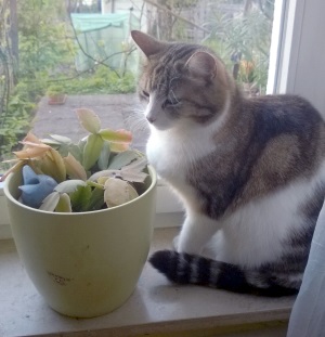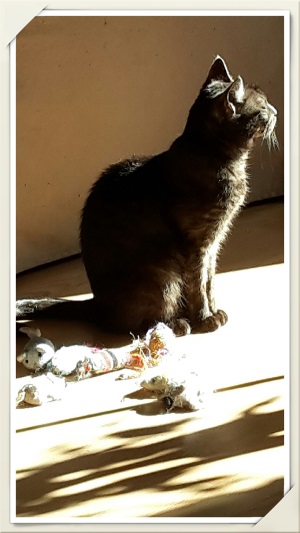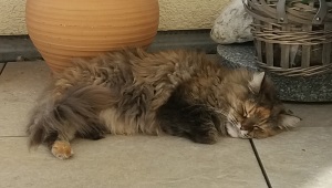 Mit Hunden hat sie gar kein Problem solange diese sie nicht bedrängen. Floh ist eine aufmerksame und neugierige Katzendame, welche sich ihrer magischen Wirkung auf Menschen bewußt ist und die Zuwendungen sehr genießt. Sie ist mir eine tolle Lebensgefährtin und es war eine sehr gute Entscheidung ihr damals ein Zuhause gegeben zu haben.