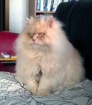 Ich wiege jetzt 3,7 kg (Ich achte auf meine schlanke Linie!) und Klex ist dick. Die wiegt nämlich 4,4 kg! Neulich hab ich wiedermal Fernsehen geguckt. Kennt Ihr "Herr der Ringe?" Da gibt es den Gollum und der sagt "FETTER Hobbit!" und Klex ist eben ne "FETTE Katze!"