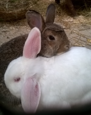 etwas verspätet kommen hier endlich die versprochenen Fotos von Kleopatras Kindern, die inzwischen einen "richtigen" Namen bekommen haben und nun Ivy und Blue heißen. Leider lief die Zusammenführung mit meinen beiden schon vorhandenen Kaninchen nicht so ab, wie wir uns es vorgestellt hatten, da die sonst so schüchterne Häsin ein ungeahntes Zickenpotenzial gezeigt und die beiden Kleinen derartig gejagt hat, dass sie beide Bisswunden am Rücken bekamen und von den beiden älteren getrennt werden mussten. Aktuell leben Blue und Ivy jetzt also in einem separaten Gehege und konzentrieren sich auf ihre Genesung. Sobald es ihnen wieder vollständig gut geht, wagen wir vielleicht einen zweiten Versuch mit der Gruppenhaltung, doch auch so, wie es aktuell ist, scheinen die beiden sich sehr wohl zu fühlen und sind schon mit Bocksprüngen und Haken schlagend durch den Freilauf rennend gesichtet worden. Auch den heutigen ersten Schnee finden sie toll und sehr spannend.