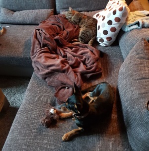 hier schreibt euch euer Ex-Mitbewohner Finn. Ich habe mich in meinem neuen Zuhause schon super eingelebt. "Finn Furchtlos", wie mich meine neuen Eltern nennen, (also ich) habe schon am allerersten Tag fleißig die Wohnung erkundet und mich mit meinem neuen 4-pfotigen Mitbewohner Tommy und meinen Eltern vertraut gemacht. Und wir kuscheln soooooo gerne miteinander. Meistens schlafe ich dann auf dem Bauch oder Schoß meiner Besitzer einfach ein.