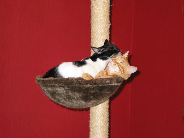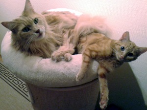 im April haben wir die zwei Mini-Tiger Mala (jetzt Ginger) und Duca (jetzt Lucy) zu uns geholt. Zu Anfang waren die beiden (wie ja auch angekündigt) noch etwas schüchtern, das hat sich inzwischen aber gelegt und die beiden haben ihr neues Zuhause voll unter Kontrolle. Besondern Lucy hat sich zu einer richtigen Schmusekatze entwickelt. Beide sind total verspielt und es gab noch keine Stoffmaus, Springball oder Feder-Angel, hinter welcher nicht durchs ganz Haus hinterhergejagt wurde. Und wie man auch an den Fotos sieht, sind die beiden immer noch ein eingespieltes Team.