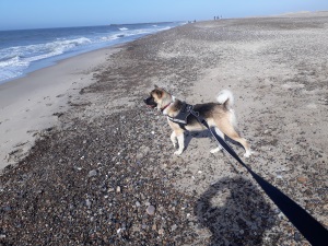 Jetzt sind wir seit 4 Tagen in Dänemark und uns allen gefällt es hier. Bali hat jedoch eher Angst vor den Nordseewellen und hält Abstand, aber am Strand tobt sie sich gerne aus.