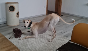 Bella orientiert sich sehr stark an Soleil, sodass sie auch die üblichen Zeiten für Spaziergänge, Pinkeln und - vorallem - Essen schnell adaptiert hat. Ansonsten ist sie mitunter unheimlich neugierig und charmant. Bei Spaziergängen schaut sie sehr, sehr gerne intensiv zu den Rehen in der Ferne, verhält sich aber dennoch vorbildlich. Manchmal braucht sie ein wenig Zeit, um Ruhe zu finden, wir sind aber konsequent dabei, das zu üben, und sie ist stets gut ansprechbar, auch wenn sie ab und an etwas meckert.