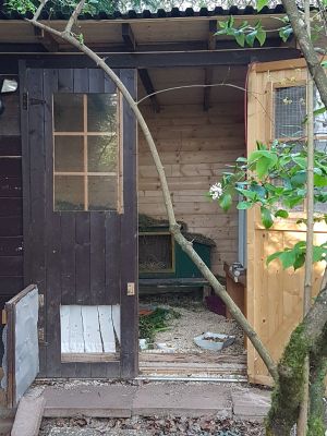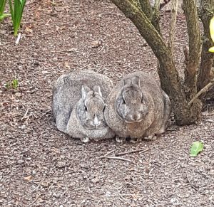 Bonnie (hat vorher bei Ihnen im Elisabethenhof gelebt) und Sindbad (haben wir aus einem Tierheim in Frankfurt) leben bei uns nun schon einige Jahre. Nach anfänglichen Kontaktschwierigkeiten, sind die beiden seit langem ein Herz und eine Seele. Nachdem ihr Garten ausbruchsicher gemacht wurde, rennen sie den ganzen Tag im Freien rum. Abends müssen sie in ihr Kaninchenhaus, weil wir direkt am Wald wohnen und ungebetene Gäste kommen könnten.