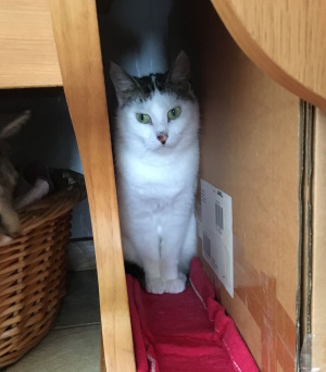 Hier angekommen hielt sie sich die ersten Tage total verängstig in der hintersten Ecke der Eckbank versteckt.