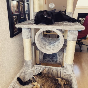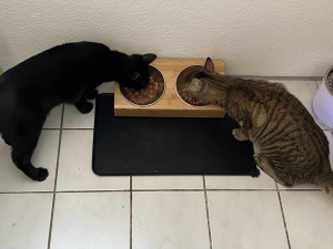 Wir wollten uns mit ein paar Eindrücken melden wie es für Elclyde und Hades hier so läuft :) Sie spielen sehr harmonisch, schlafen mit ein paar cm Abstand nebeneinander bei uns oder in der Wohnung (gerne im Bett) und fressen auch nebeneinander :)