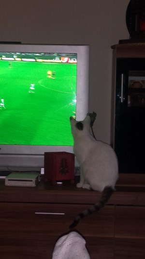 Meine 2 Dosenöffner, die sind auch super lieb. Sie gaben mir die Zeit, mich hier einzugewöhnen. Und jetzt können sie so richtig über mich lachen. Es amüsiert sie immer wieder, wenn ich meine 5 Minuten habe. Das heißt, ich renne hier einfach mal so durch die Zimmer. Als ob ich Hummeln im Hintern habe. Und mein neustes Lieblingsspielzeug sind ihre Schuhbändel. Sie haben mir einen ganzen Haufen davon gegeben und die ziehe ich hier durch mein neues Heim. Das macht Spaß und sie finden es lustig. So geht das jeden Abend. Und ich habe noch was neues entdeckt. Das nennt sich Fernsehen. Da bewegt sich immer alles so schnell und das ist lustig.
