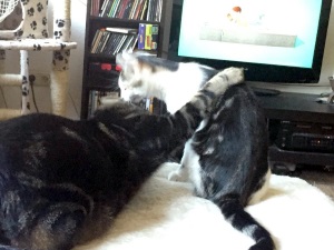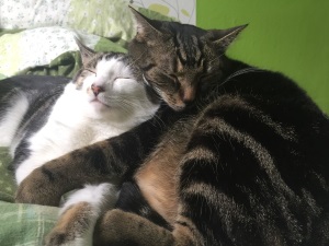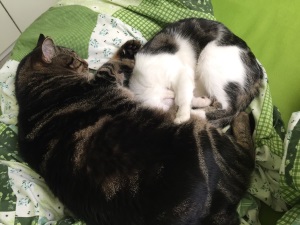 Ich hoffe, auf den Fotos sieht man, wie sehr die zwei Kater sich mögen...