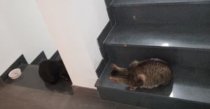 Das zusammen treffen mit unserer alten Katze läuft an sich recht entspannt. Unsere Katze knurrt und faucht noch ab und an, aber sie können wie z.B. beim Katzengras auch friedlich recht nah beieinandersitzen.