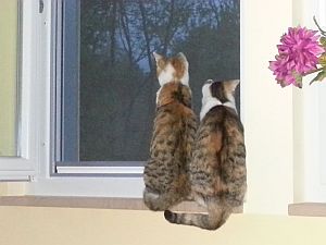 Seit März sind sie Freigänger (nach der Kastration) und genießen tagsüber ihr Leben in Feld, Wald und Wiesen. Abends sind sie aber am liebsten zu Hause und liegen mit uns auf dem Sofa. Honey ist unser Frechdachs und die Entdeckerin. Chocolate ist eher das "Mädchen", das uns zurechtweist, wenn es nicht pünktlich das Essen gibt.