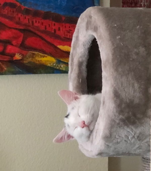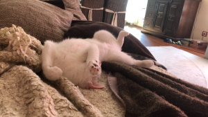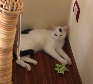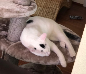 Die beiden haben sich gut eingelebt. Brösel kam zwar die ersten 2 - 3 Tage maximal zum Essen raus, mittlerweile ist er auch noch schreckhaft, aber tollt mit Fussel durch die Gegend und lief heute morgen das erste mal schnurrend um meine Beine, als ich das Fressen verteilt hab. Er lässt sich auch streicheln, wenn er in seiner Lieblingsecke liegt und sich sicher fühlt. Fussel war von Anfang an verschmust, spielt gerne und lässt sich sogar auf den Arm nehmen. Er ist immer mittendrin statt nur dabei ;-).