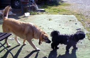 Kumpels. Es kommen auch Freunde von Herrchen mit Ihren Hunden zu Besuch, da ist immer "Action".