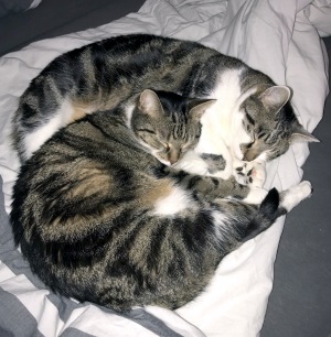 Solche zutraulichen, liebevollen und pflegeleichten Kater haben wir noch nie kennengelernt. Sie sind wie kleine Hunde, die sich immer auf den Rücken legen, wenn geschmust wird, damit ihre Bäuchlein gekrault werden können. Für keinen Preis der Welt würden wir unsere beiden Schätze hergeben! Es war die beste Entscheidung, den beiden Brüdern ein vollends erfülltes Leben bei und mit uns zu ermöglichen.