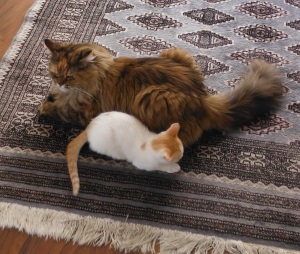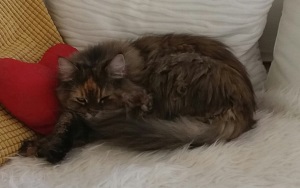 Ich denke, sie fühlt sich wohl bei uns + hat uns alle adoptiert.