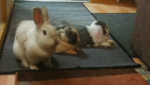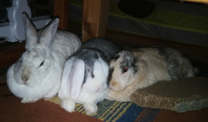 anbei ein paar Fotos von Vanilla Lina, die kleine Maus ist ein ganz wichtiger Teil unserer Familie. Wie man auch sieht haben sich meine 3 Kaninchen richtig gerne. Das eine Foto ist direkt von gestern abend.