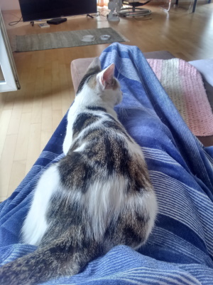 Kitty ist nun schon vier Wochen bei uns in ihrem neuen Zuhause und wir denken, sie fühlt sich wohl.