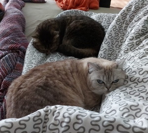 die Beiden haben den Umzug gut überstanden und sind in den letzten zwei Jahren sowieso sehr aufgeblüht. Die damalige Schüchternheit haben sie völlig abgelegt und fordern ihre Streicheleinheiten bei uns ein.