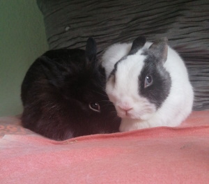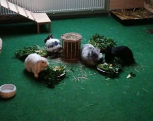 Wir hatten Sie zuerst mit unserem alleinstehenden Männchen Simba vergesellschaften und die zwei waren nach kurzer Zeit ein Herz und eine Seele. Seid dem sind die zwei unzertrennlich. Lilo hat eine tolle Wirkung auf Simba da er sehr ängstlich war und bei ihr einen sicheren Platz gefunden hat und genauso auch andersrum. Im April sind wir umgezogen und haben Lilo und simba mit unseren anderen zwei Kaninchen Willi und Amy vergesellschaftet. Die vier haben ein eigenes Zimmer mit ca. 12 Quadratmetern und sie dürfen während ich oder mein Partner zuhause ist auch durch die ganze Wohnung hoppeln die komplett Kaninchen sicher ist. Die Vergesellschaftung lief sehr gut die vier verstehen sich sehr gut und Lilo hat sich super in die Gruppe integriert. Außerdem gleicht sie die Gruppe sehr aus und versteht sich sogar mit der etwas temperamentvollen Amy gut. Wir haben Lilo sehr in unser Herz geschlossen und sie ist mit der Zeit sehr aufgeblüht und zutraulich geworden. Lilo ist ein sehr neugieriges Kaninchen und liebt es im Sand zu buddeln.
