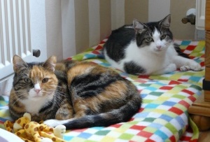 ich sende viele liebe Grüße aus meinem neuen zu Hause. Wohne jetzt ja schon über 4 Monate dort und es gefällt mir sehr gut. Ich liebe gammeln - sehr oft mit meiner Freundin Nala (siehe Fotos), Kratzbäume und die Esszimmerstühle sowie die Vliestapeten. Den Staubsauger finde ich genauso interessant wie den Vileda-Wischer. Spielen mag ich natürlich auch. Natürlich lasse ich mich noch nicht anfassen, aber ich habe schon Vertrauen gefasst. Mit meiner Freundin Nala verstehe ich mich gut, wir spielen fangen und verstecken. Gemeinsames chillen mag ich besonders.