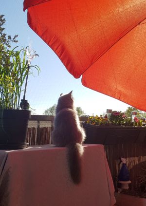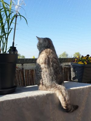 Der Balkon ist toll, da kann man richtig viel erleben und so vieles Neues entdecken. Wir sitzen gerne zu zweit auf unserem Aussichtspunkt und beobachten was es so Neues in der Welt gibt.
