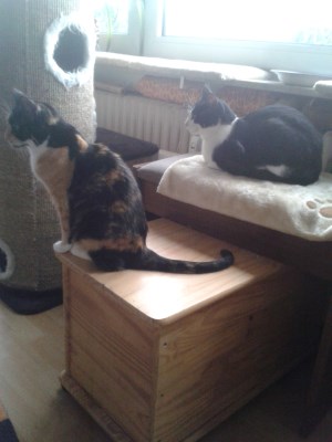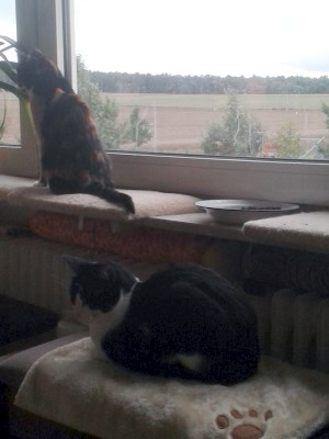 Hier wie versprochen ein paar Bilder. Futter und Katzenstreu wurden prima angenommen. Beide sind sehr verschmust und Tonin zeigt sich recht gesprächig. Würde mich nicht wundern, wenn er einen Orientalen in der Ahnenreihe hat. :) VG