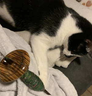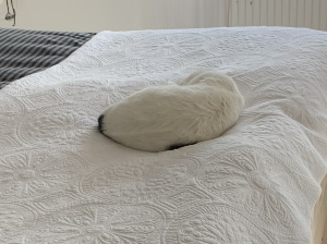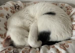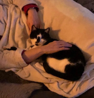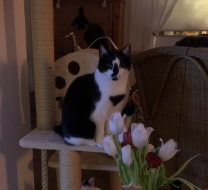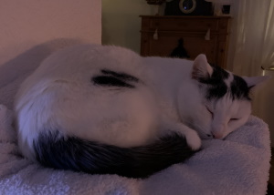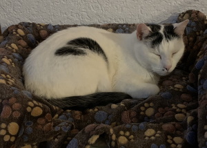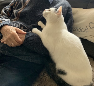 Elly und Marilyn haben sich prima bei uns eingelebt und die Herrschaft über Haus und Familie übernommen. Marilyn hat einen neuen Freund. Jeden Dienstag, wenn mein Vater zu Besuch kommt, sind die beiden ein Herz und eine Seele 😻 Im HomeOffice bin ich nie allein. Und abends liegen wir alle zusammen im Wohnzimmer: Elly, B. und ich auf der Couch, Marilyn auf ihrem Sessel. Nachts schläft Marilyn am Fußende unseres Bettes, Elly bleibt lieber auf der Couch.