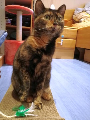 Sie war keine 5 Minuten versteckt, da kam sie auch schon wieder raus und hat sie Wohnung erkundet. Zwar ist sie immer wieder mal bei plötzlichen Geräuschen oder Bewegungen wieder abgehauen, kam aber ruck zuck auch wieder raus. Ist sehr neugierig und interessiert. Nach einer Stunde hat sie schon mit meinen beiden Töchtern gespielt, hat gefressen, ging auch gleich auf das Katzenklo und saß abends bei uns gekuschelt auf dem Sofa und nachts im Bett. Also alles super! Kann so bleiben!