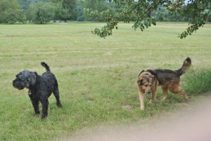 Arko macht in Punkto Anhänglichkeit Riesen-Fortschritte. Er hängt sich förmlich an die Fersen meines Partners. Abends ist auf unserer „Liegewiese“ vor dem Fernseher Kuschelstunde mit intensivem Körperkontakt. Den größten Erfolg haben wir auf unseren Spaziergängen. Wir können in übersichtlichem Gelände beide Hunde von der Leine lassen. Wir haben entdeckt, dass Rika auf gewisse laute Töne reagiert. So konditionieren wir beide Hunde auf eine Trillerpfeife – und es klappt! Zusehen, wie freudig und entspannt sie „kruschteln“, da geht einem einfach nur das Herz auf.