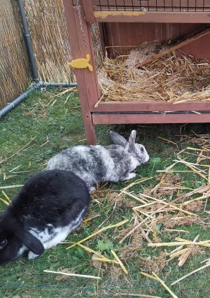 Ihre neuen Namen sind Seppel und Flöckchen. Sie haben ein großes Gehebe von 2x4 Metern. Sie werden regelmäßig geimpft. Wir sind sehr glücklich mit innen.