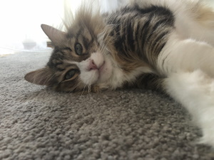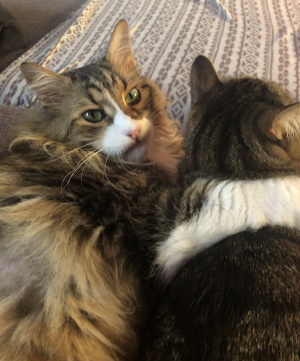 die beiden haben sich super eingewöhnt und sind zwei richtige neugierige und aufgeweckte Schmusekatzen. Strolch versteckt sich jetzt seit drei Tagen nicht mehr und genießt es auf der Couch zu liegen.