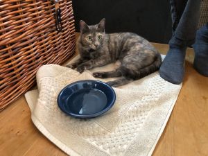 Sie ist sehr zutraulich, kommt bei Besuch im Eingewöhnungszimmer direkt zu einem und lässt sich streicheln.