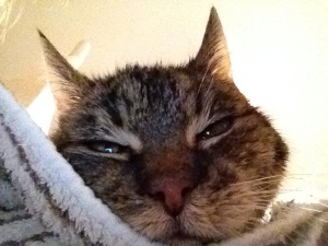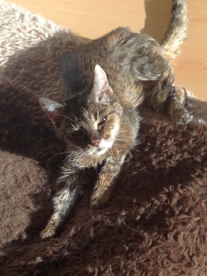 Da ich fast nichts mehr höre und nicht mehr gut springen kann. Ich habe viele kuschelige Plätze zum Liegen und Fenster zum Hinausschauen. Ich will auch gar nicht mehr raus.