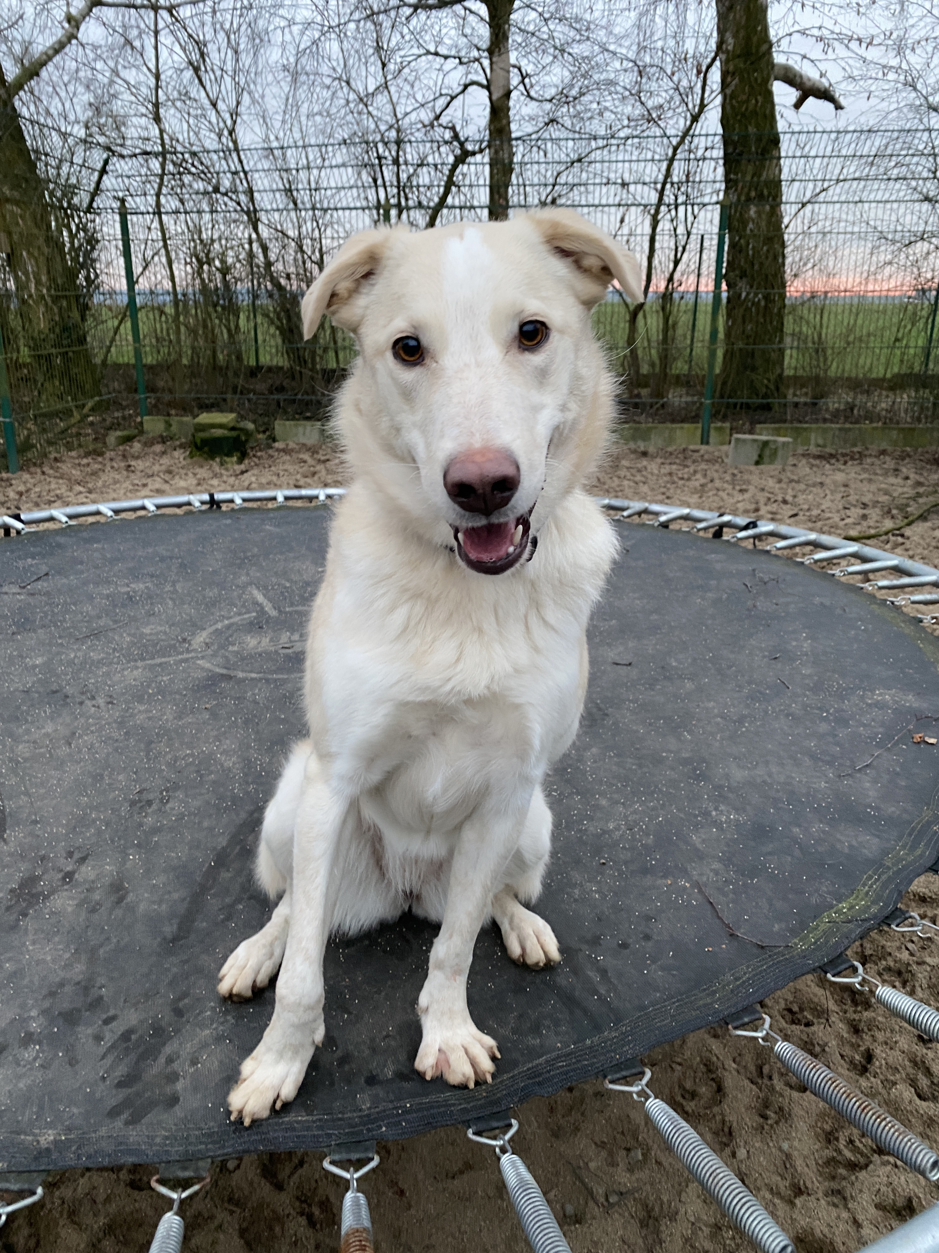 Greta ist unsere wilde Hummel mit Killerbienen-Alluren...Sie kann ein solch lustiger und verschmuster Hund sein, ist gelehrig und schnell in der Denke, aber auch physisch. Greta hat als Junghund leider keine „Neins“ und Grenzen kennengelernt, weder bei Menschen noch bei Hunden. Im Tierheim konnte sie aber bereits einiges lernen und hat nun zumindest eine Vorstellung davon, dass nicht alles im Leben nach ihrem Kopf gehen kann und, dass es sich lohnt, auf menschliche Entscheidungen zu vertrauen. Wir bringen sie mit unterschiedlichen hündischen Charakteren zusammen, um ihr Kommunikations- und Verhaltensrepertoire aufzubessern. Mit wem sie warm geworden ist, den liebt sie und schätzt die ruhigen Momente mit ihrer Bezugsperson im Leben, auch, wenn sie eher der Action-Typ ist.Greta will gesehen und angenommen werden, möchte durchs Leben geleitet und willkommen sein. Greta wird ländlich an hundeerfahrene Menschen vermittelt, die keine Kinder haben; Jugendliche auf dem Weg zum Erwachsenen im Haus wären okay.