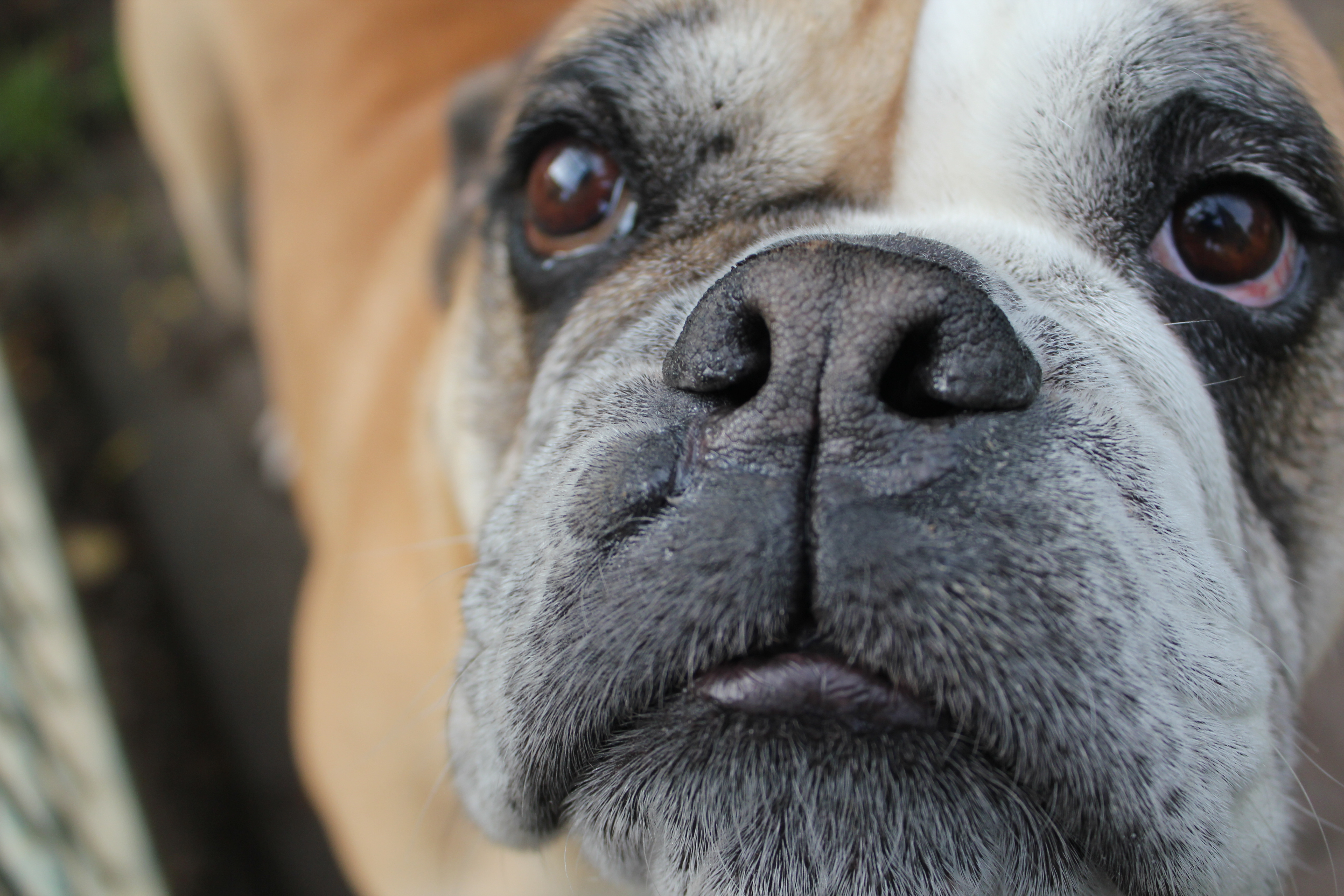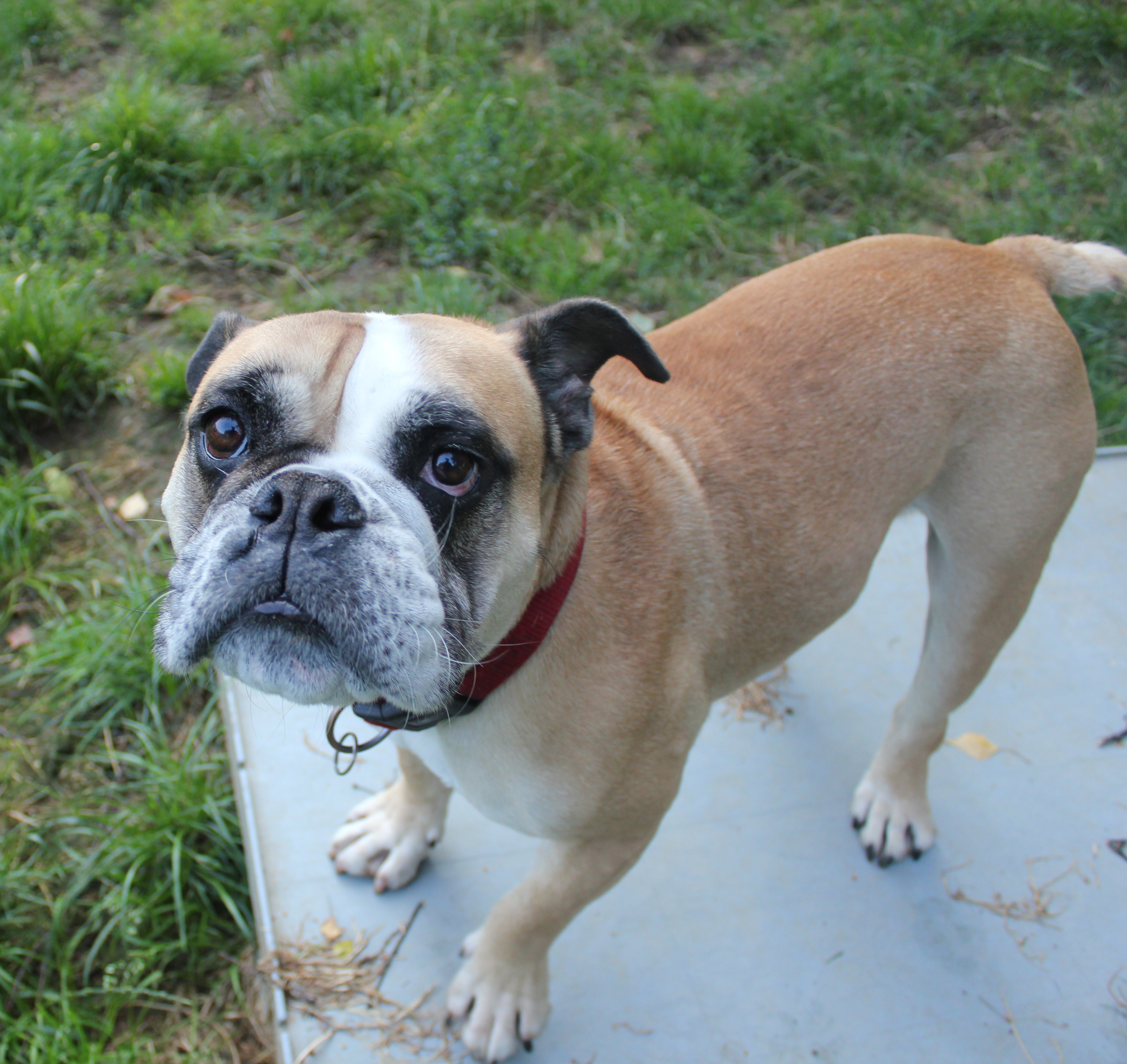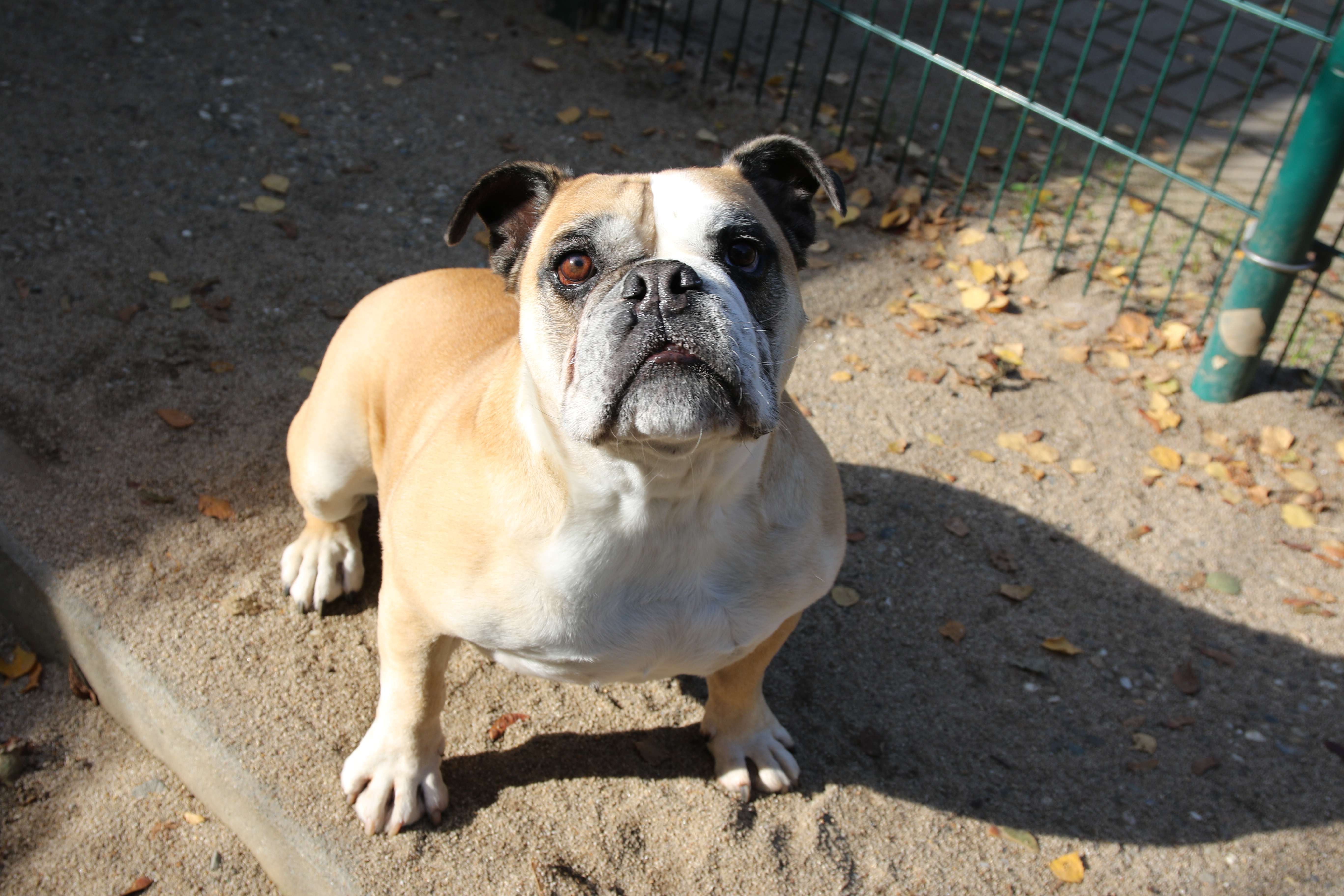 Mac ist - etwas bulldogtypisch - ein energiesparendes Wesen, das es warm, weich und kuschelig mag. Während nahezu alle Hunde bei Dienstantritt schon wach sind und die Pflegerin auffordern, sich zu beeilen, dreht Mac sich in seinem Bett lieber noch mal um und hofft, die erste Outdoorsession noch ein paar Minuten verzögern zu können. Zu warm ist ihm nichts, da kommt so ein Bulldog ja logischerweise gerne schnell an seine Grenzen; frisch und kühl ist ist ihm aber noch weniger etwas, denn frieren mag er gar nicht. Also, geht er im Herbst als einer der ersten Bewohner des Elisabethenhofs mit leichten Übergangsjäckchen in Feld und Flur gemütlich flanieren. Versehen mit einem Maulkorb.