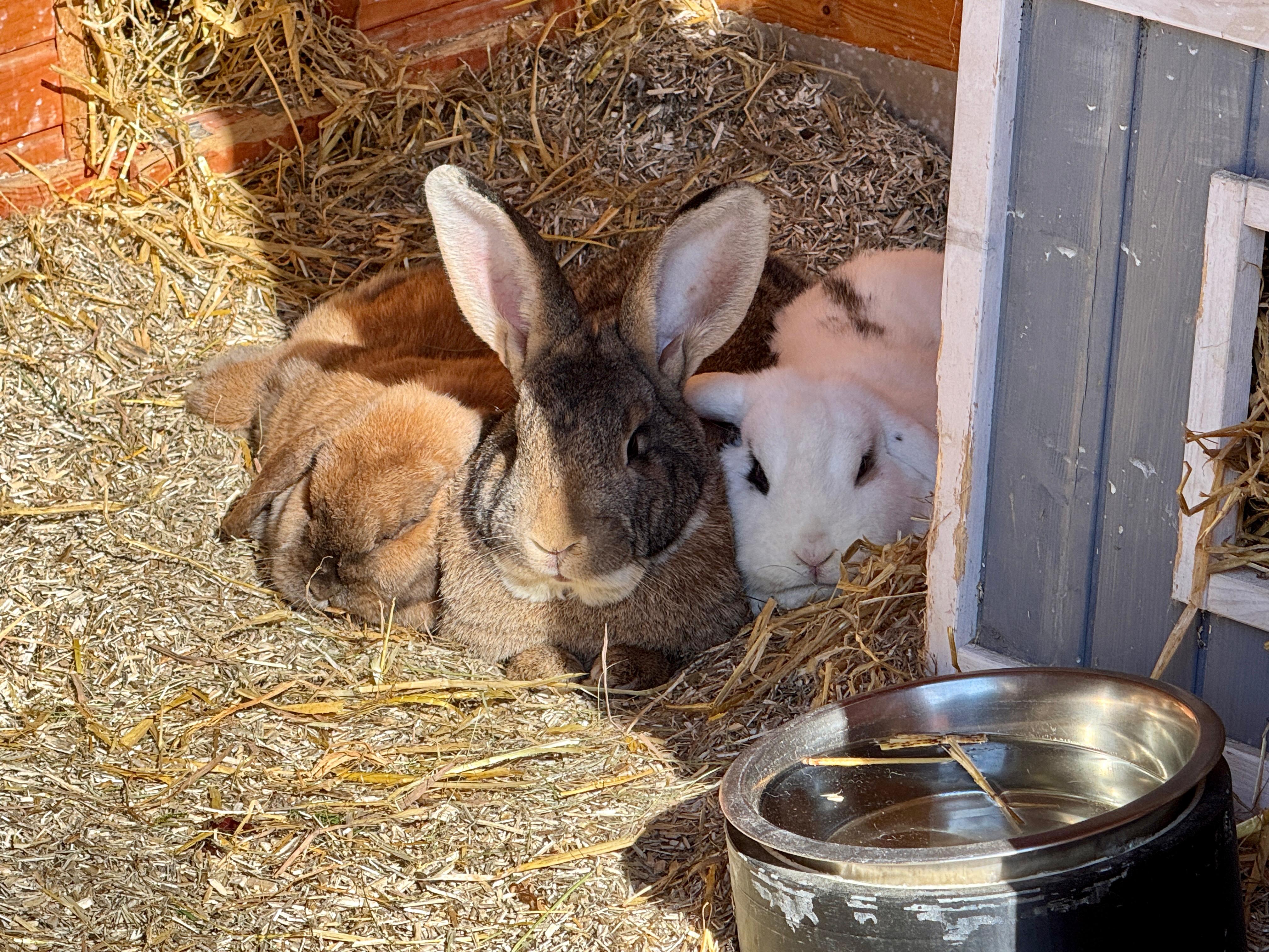 Die drei bezaubernden Kaninchen Goldie, Hazel und Nubia haben sich gesucht und gefunden – und möchten auf keinen Fall getrennt werden. Das harmonische Trio lebt aktuell in artgerechter Außenhaltung und ist bestens an das Leben draußen gewöhnt.