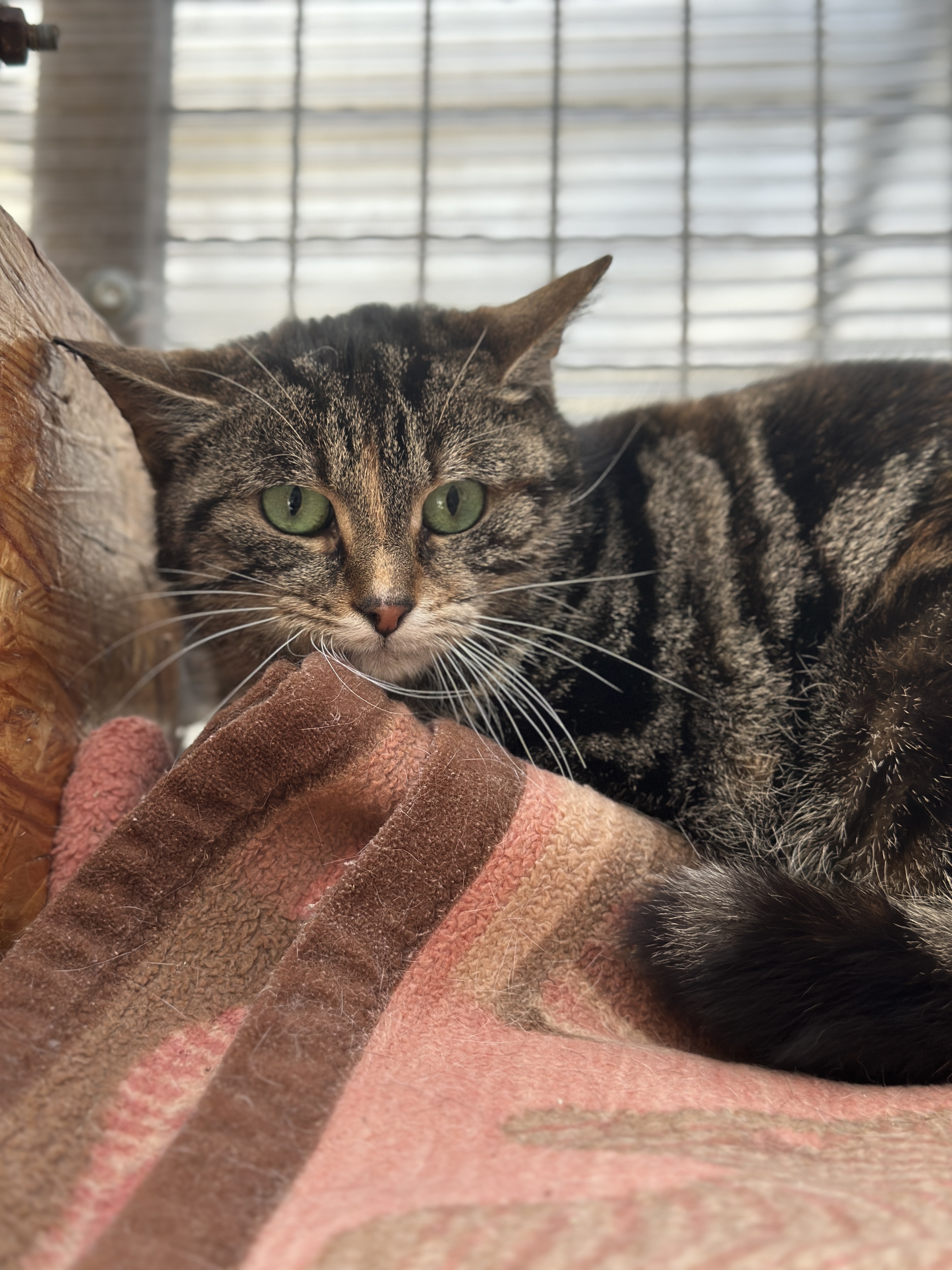 „Annell" ist eine sehr zurückhaltende Katze, die sich meist in ihrer Höhle versteckt und erst raus kommt, wenn keine fremden Menschen mehr in der Nähe sind. Hier im Tierheim ist sie aber auch sehr gestresst, denn es ist hier immer was los und so ganz zur Ruhe kommt sie dadurch auch nicht. Mit uns Katzenpflegern kommt sie recht gut zurecht und wir können gut ihr Vertrauen gewinnen, indem wir ihr Geduld entgegen bringen. „Annell" würde so gerne aus sich heraus kommen, was man ihr auch richtig anmerkt. Sie faucht nicht und sie haut auch nicht. Wir suchen für sie geduldige Menschen, die ihr Zeit, Ruhe und Geduld geben, damit sie auch endlich ankommen darf. Anderen Katzen gegenüber ist sie sehr sozial, weswegen sie auch nur zu einer schon vorhandenen sozialen Katze vermittelt wird, die ihr im besten Fall auch Sicherheit geben kann. Wir suchen für sie ein neues Zuhause in reiner Wohnungshaltung mit gesichertem Balkon oder ein Zuhause in ruhiger Wohngegend, wo sie nach einer längeren Eingewöhnung ihre Umgebung als Freigängerin erkunden kann. Jugendliche Kinder dürften für "Annell" kein Problem sein, wenn sie die Grenzen der Katze gut einschätzen können. Kleine Kinder sollten in ihrem neuen Zuhause nicht leben.