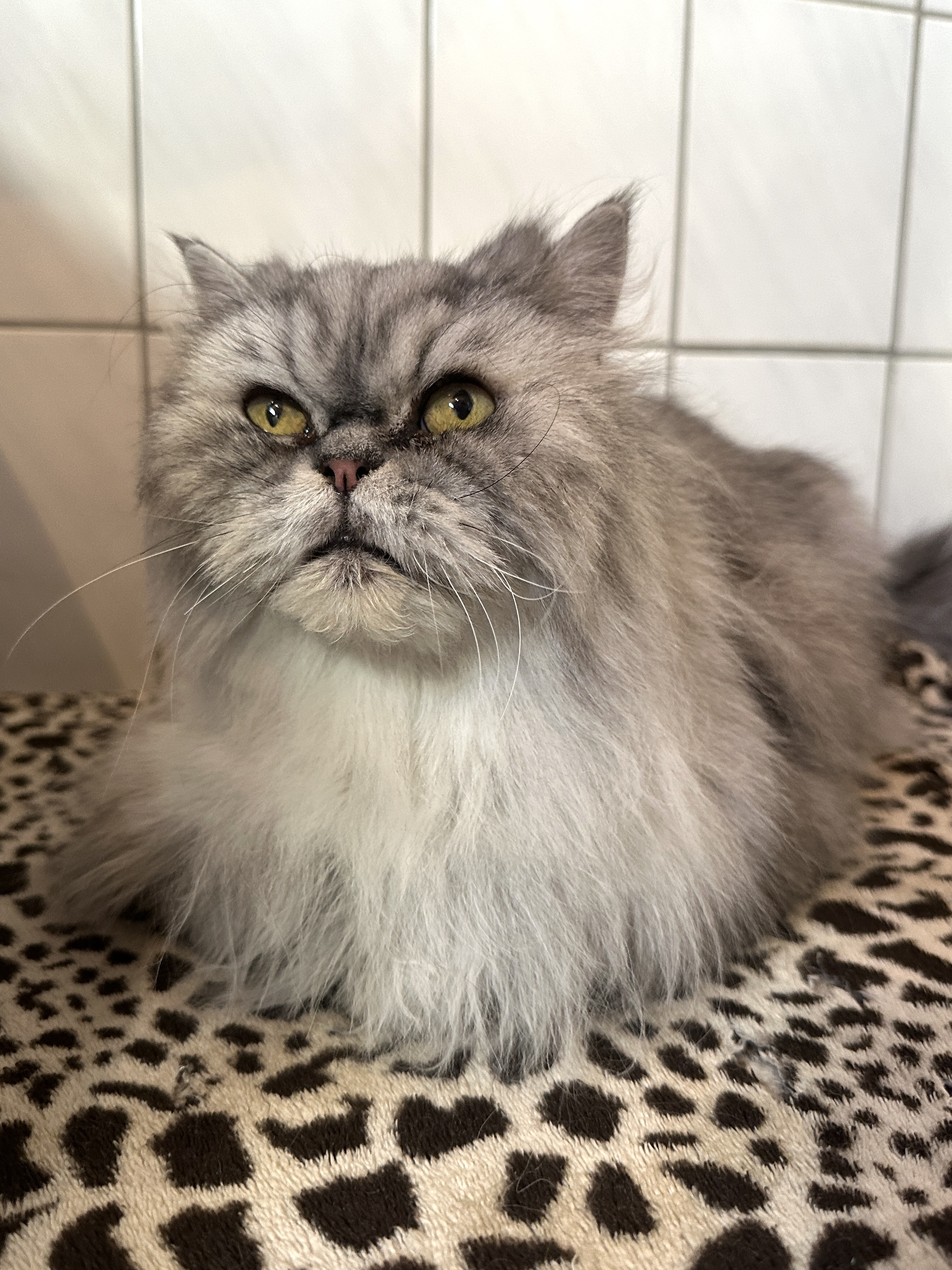 „Bärbel“ ist eine sehr verschmuste und zutrauliche Katze. Sie liebt es von Menschen, ganz egal ob fremd oder bekannt, Aufmerksamkeit zu bekommen. Sobald man anfängt sie zu streicheln, kann sie nicht mehr genug davon bekommen. Auch das Kämmen gefällt ihr sehr gut und das genießt sie dann auch total, was bei ihrem Fell von Vorteil ist, denn das muss in ihrem neuen Zuhause unbedingt weitergeführt werden, damit sie nicht verfilzt. Bei „Bärbel“ wurde bei der Eingangsuntersuchung festgestellt, dass sie ein Herznebengeräusch hat, weswegen sie auch schon einen Termin für einen Herzschall hat. Ob sie also Medikamente für ihr Herz braucht oder nicht, können wir noch nicht sagen. Auch das Geriatrieprofil steht noch aus, um zu schauen, ob alle Organe in Ordnung sind oder ob sie auch da durch Medikamente Unterstützung braucht. „Bärbel“ ist es aus ihrem vorherigen Zuhause gewöhnt in reiner Wohnungshaltung zu leben. Auch möchte sie als Einzelkatze in ihrem neuen Zuhause leben, da sie die alleinige Aufmerksamkeit ihrer Menschen haben möchte. Wir suchen für „Bärbel“ ein neues Zuhause in reiner Wohnungshaltung, sicherlich würde sie sich auch über einen abgesicherten Balkon freuen, das ist aber kein Muss.