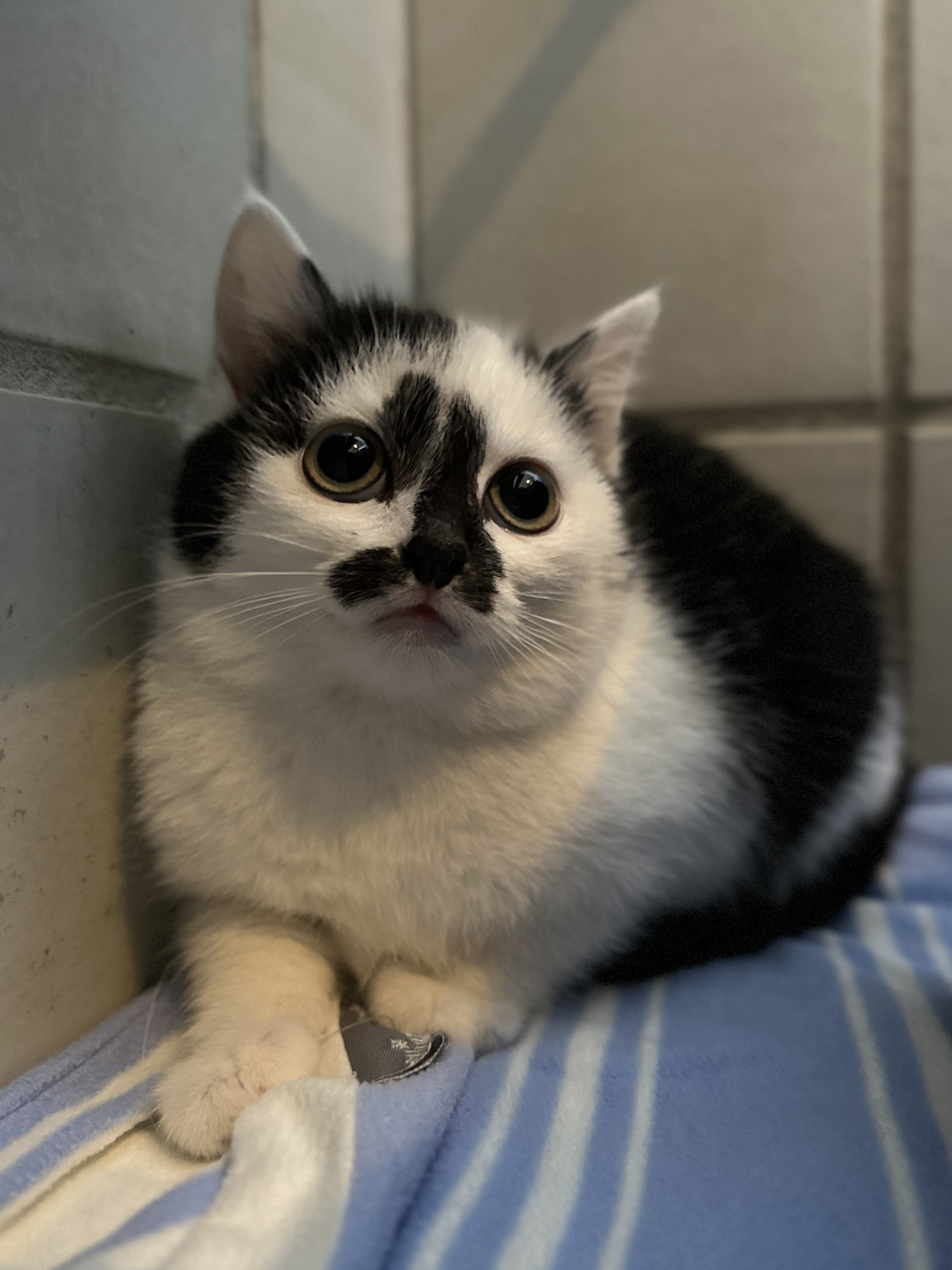 „Belia“ ist eine schüchterne Jungkatze, die zusammen mit ihren Geschwistern „Baila“ und „Brodie“ zu uns kam. Sie hatten, bevor sie zu uns kamen, keinen Kontakt zu Menschen. Hier im Tierheim lernt sie gerade, dass Menschen nichts böses von ihr wollen. „Belia“ faucht zwar, wenn man sich ihr nähert, aber haut nicht nach vorne. Da sie immer mit ihrer Schwester „Baila“ zusammen liegt und die beiden sich immer gegenseitig suchen, werden sie auch nur zusammen vermittelt. Wir suchen für „Belia“ und „Baila“ geduldige Menschen, die ihnen die Zeit geben, die sie brauchen, um aus sich raus zu kommen. Ideal wäre es natürlich, wenn sie zu einer schon vorhandenen sozialen Katze vermittelt werden, die ihnen zeigen kann, dass alles in Ordnung ist und sie keine Angst haben müssen. „Belia“ und „Baila“ suchen ein Zuhause in reiner Wohnungshaltung mit gesichertem Balkon.