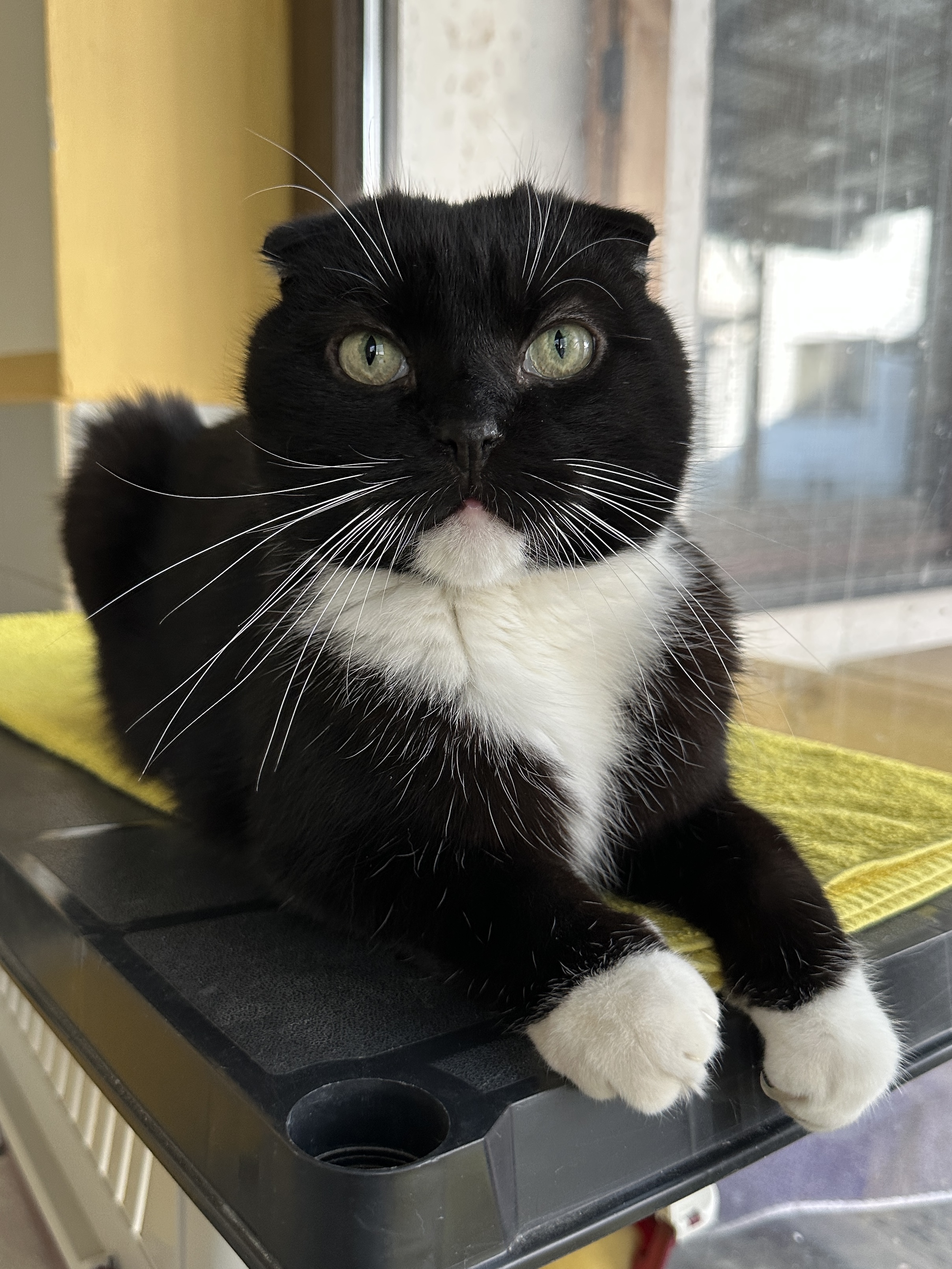 „Fabio“ ist ein sehr anhänglicher und verschmuster Kater. Er streunerte für eine längere Zeit alleine draußen herum, bis er an einer Futterstelle aufkreuzte, sofort reagiert wurde und er eingepackt worden ist. Dadurch, dass er kastriert, gechipt und sogar bei Tasso registriert war, kam dabei raus, dass seine Besitzer verstorben sind und er auf sich alleine gestellt war. Seitdem „Fabio“ bei uns ist, haben wir schon ein Röntgenbild von ihm machen lassen, da sein Gangbild schon durch seine Qualzucht verändert ist. Das Ergebnis: Spondylose in der Wirbelsäule. Seine Beine sind verdickt und diese lässt er nicht gerne von Menschen anfassen, da er auch sicherlich dort Schmerzen hat. Über die Rasse Scottisch Fold sollte man sich vorher gut informieren. Er bekommt alle 4 Wochen eine Schmerzmittelspritze, damit er schmerzfrei leben kann. Wir suchen für unseren liebevollen und verschmusten „Fabio“ ein neues Zuhause in reiner Wohnungshaltung mit gesichertem Balkon. Er möchte gerne als Einzelkater vermittelt werden.