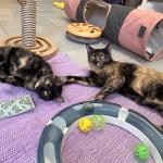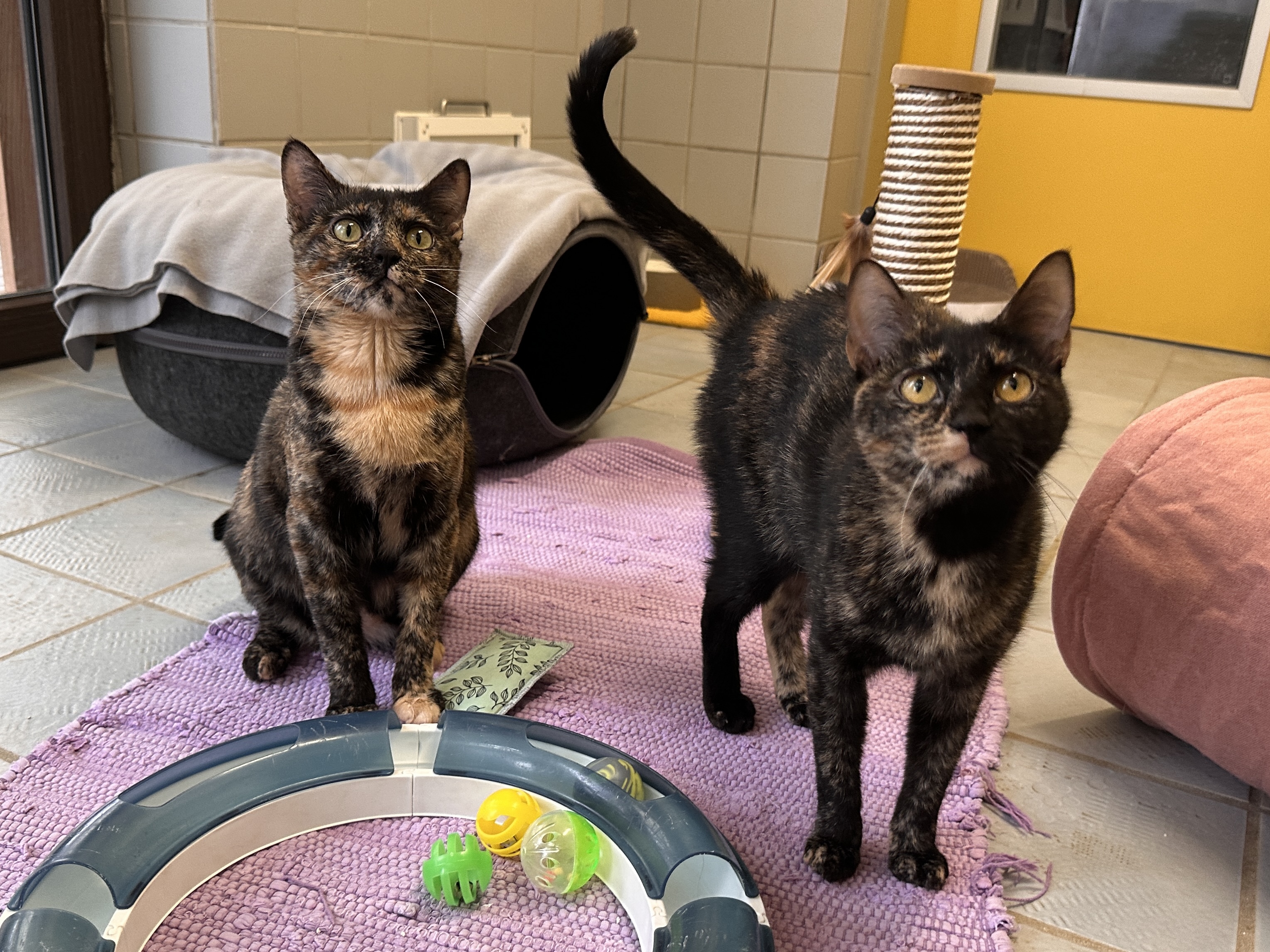 "Katrina" ist eine sehr aufgeschlossene, neugierige und verschmuste Katze. Fremden Menschen gegenüber hat sie absolut keine Scheu und lässt sich sehr gerne von ihnen durchschmusen. Ihre Freundin "Jarama" dagegen braucht manchmal ein wenig mehr Zeit bis sie aus ihrem Versteck raus kommt, aber sie lässt sich trotzdem ohne Probleme streicheln oder mit Spielaufforderungen rauslocken. Da „Katrina“ nichts von fremden Katzen hält und diesen auch gerne drohend hinterher rennt, sollten in ihrem neuen Zuhause keine Katzen vorhanden sein. „Jarama“ und „Katrina“ sind aber ein eingespieltes Team und sehr harmonisch miteinander, weswegen sie auch nur gemeinsam vermittelt werden. Ob ihnen eine reine Wohnungshaltung mit abgesichertem Balkon reicht oder ob sie später gerne als Freigänger leben wollen, können wir bisher nicht sagen, da sie noch nicht lange bei uns sind.