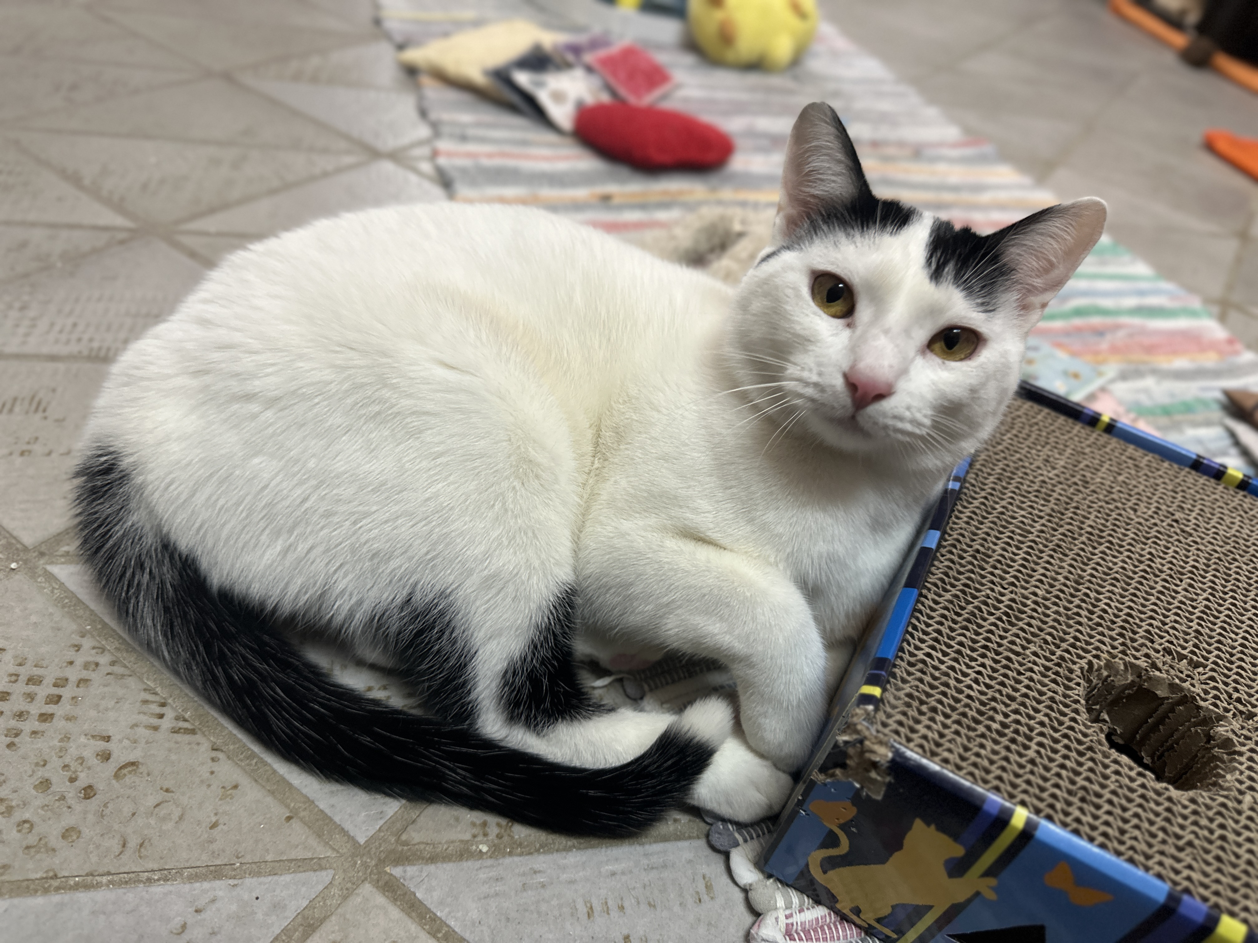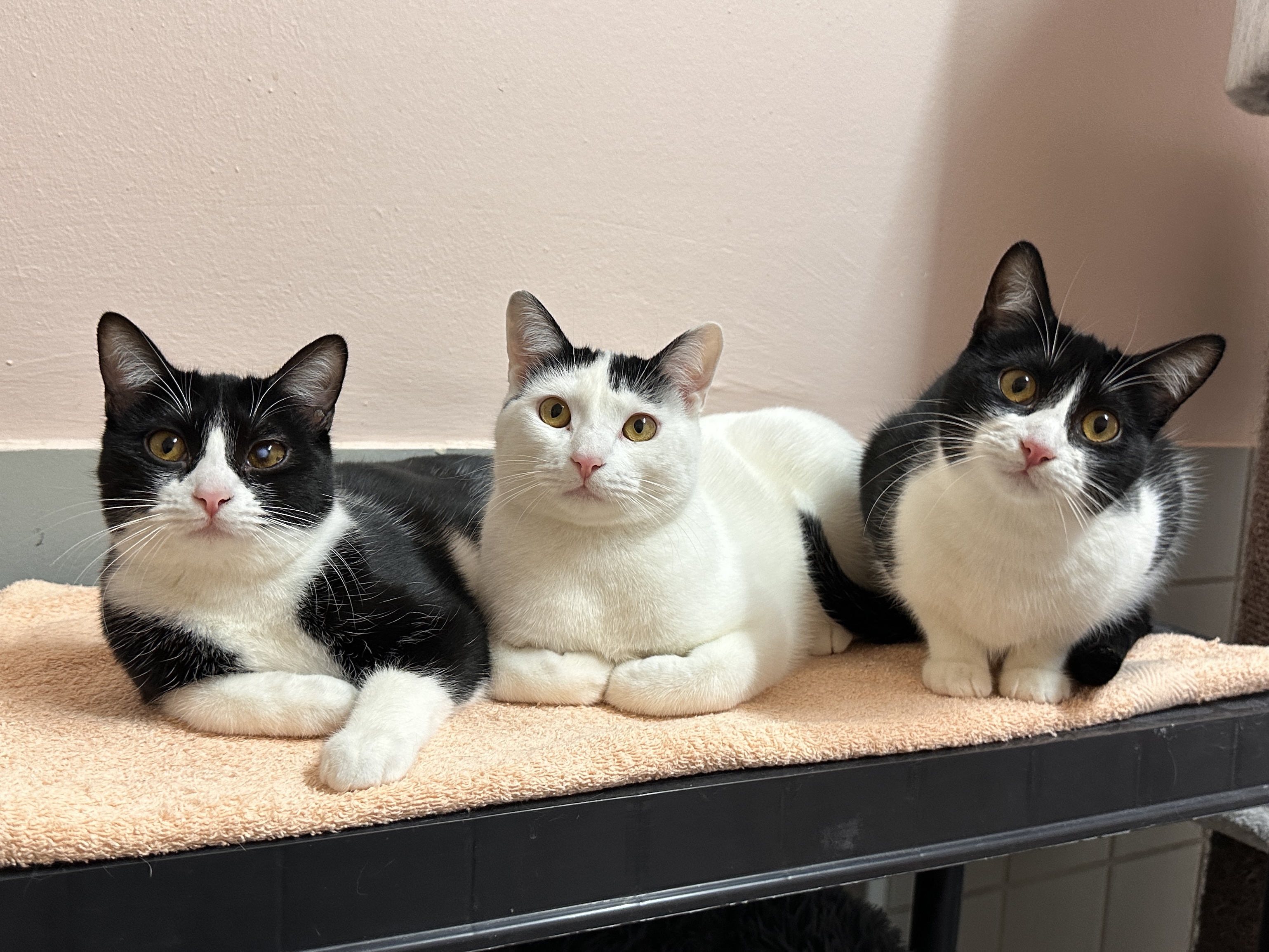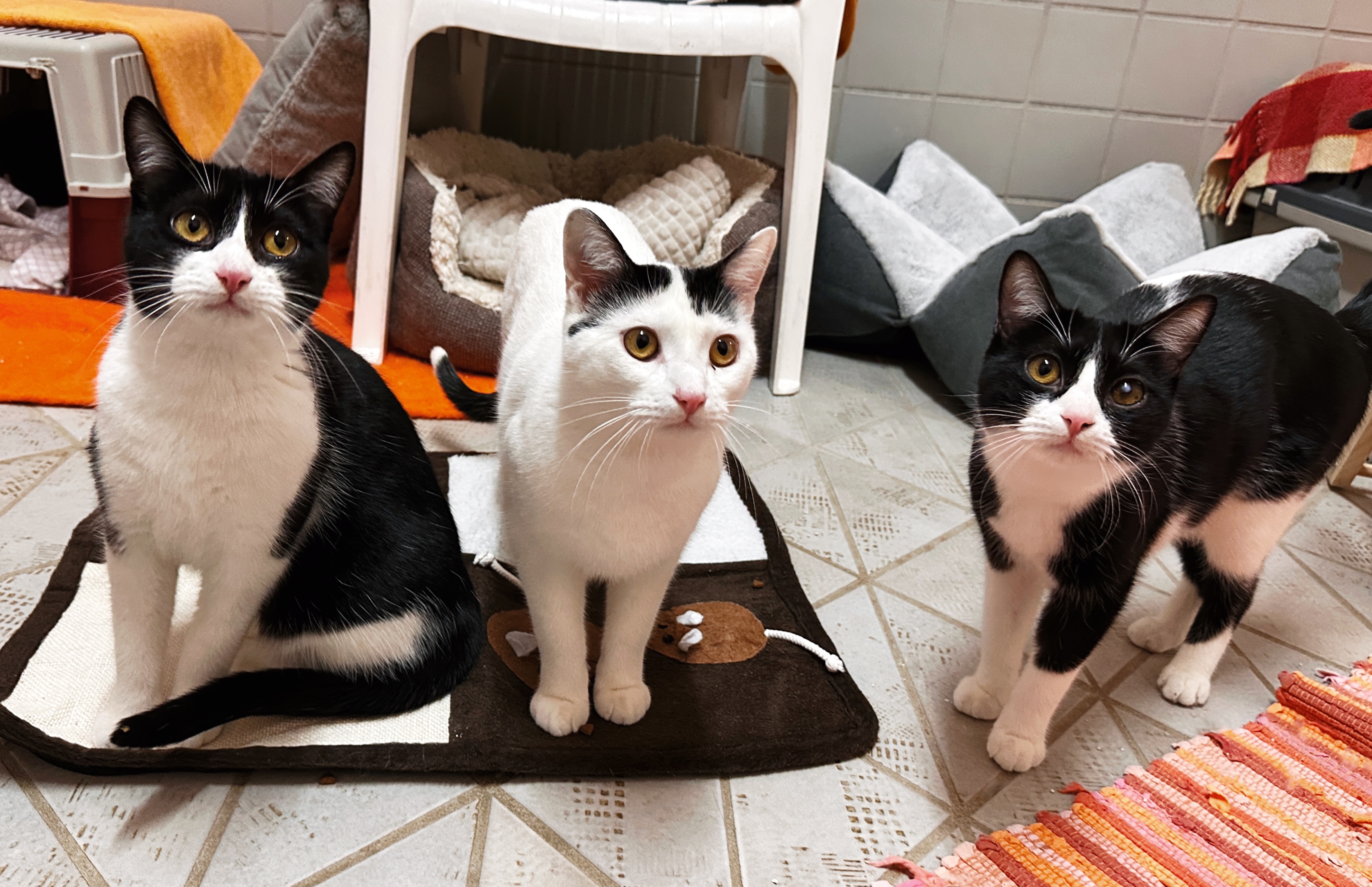 "Miso" ist ein sehr verschmuster, anhänglicher und liebevoller Kater. Gemeinsam mit seinen Geschwistern "Padthai" und "Ramen" kam er zu uns ins Tierheim. Alle Drei sind sehr aufgeschlossen gegenüber Menschen und alle können nicht genug Aufmerksamkeit und Streicheleinheiten bekommen. „Ramen“ hat einen Fleck im linken Auge, was ihr Sehvermögen etwas beeinträchtigt, aber ansonsten super gut damit zurecht kommt. Mit anderen Katzen kommt unser Trio sehr gut zurecht, weswegen sie auch durchaus zu einem schon vorhandenen sozialen Kater oder zu einer schon vorhandenen sozialen Katze vermittelt werden könnten. Da „Padthai“, „Ramen“ und „Miso“ immer miteinander kuscheln und immer aufeinander hängen, werden sie auf keinen Fall getrennt. Dadurch, dass „Ramen“ kein vollständiges Sehvermögen hat und es zu gefährlich wäre für sie als Freigängerin zu leben, wird unser Trio nur in reine Haushaltung mit gesichertem Balkon / reine Wohnungshaltung mit gesichertem Balkon vermittelt.